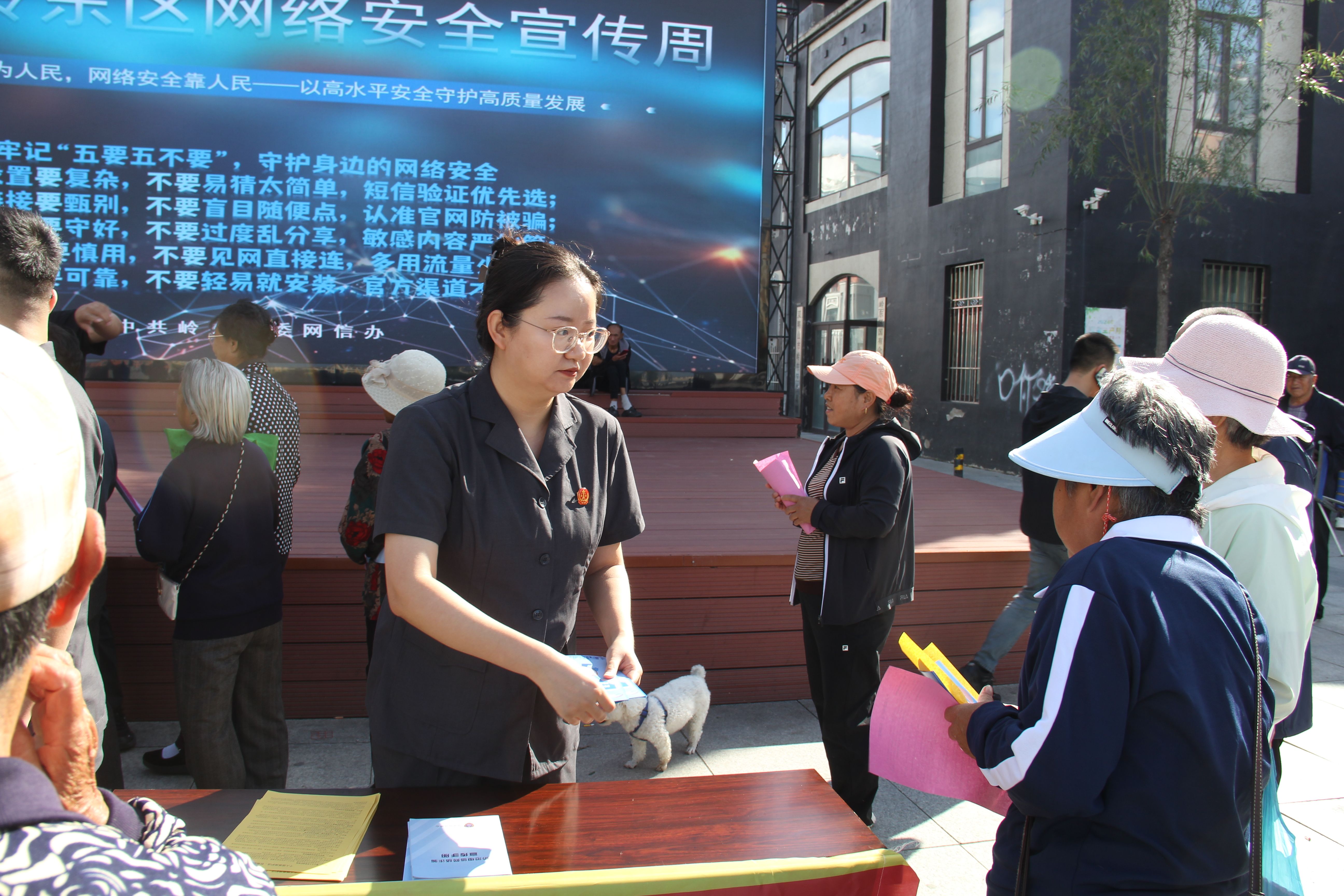 活动现场布置了醒目的宣传横幅和图文并茂的电子屏,吸引了不少居民驻足。干警们向群众发放了宣传手册、折页、实用环保袋等多种宣传材料,向群众普及网络支付安全、个人信息保护、常见网络诈骗防范等内容,通过真实案例和通俗讲解,帮助居民理解网络安全的重要性。