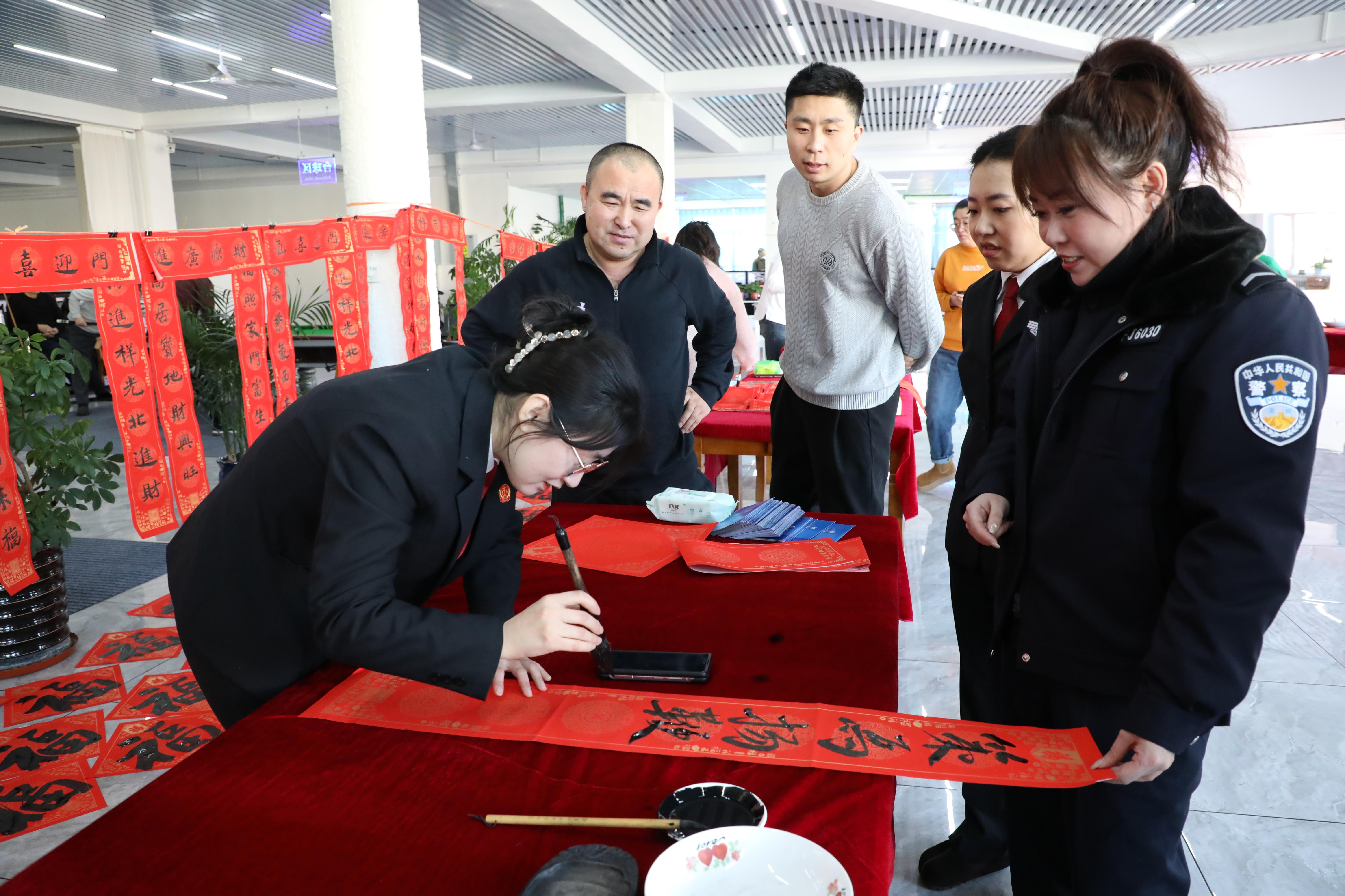 福暖万家,法护平安。活动现场,干警们将提前准备好的福字,连同书法家现场书写的春联一同送到群众手中。一个个鲜红的福字、一幅幅喜庆的春联,不仅承载着对新春的美好祝愿,更传递着法院干警为民服务的初心使命。
